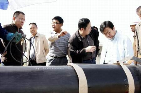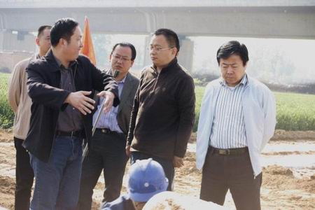 5月1日勞動節當天,賈琨副總裁又在三門峽中裕總經理楊豫忠、副總經理常文強、西二線工程建設指揮部副指揮長單超及施工、監理單位負責人的陪同下,實地考察了工程建設情況,對施工現場頂著30℃高溫緊張作業的全體施工、監理人員進行了親切慰問,于傳達董事局及管理總部各級領導關懷的同時,為大家能以更高的勁頭和更好的狀態投入到之后的建設中送去了及時的鼓勵和指導。